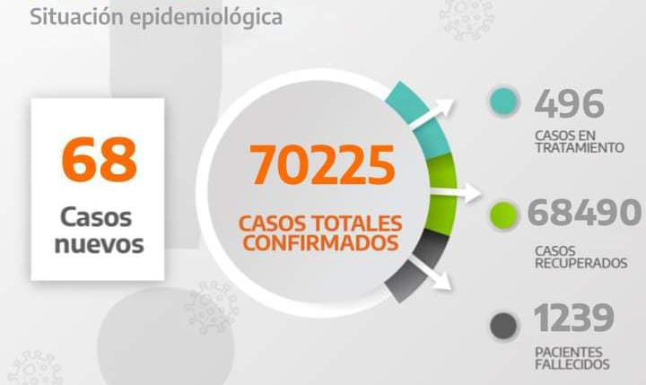 El total de muertos es de 1.239, con el de la fecha. Los positivos fueron 68, con respecto ayer 48 más. El reporte del Ministerio…