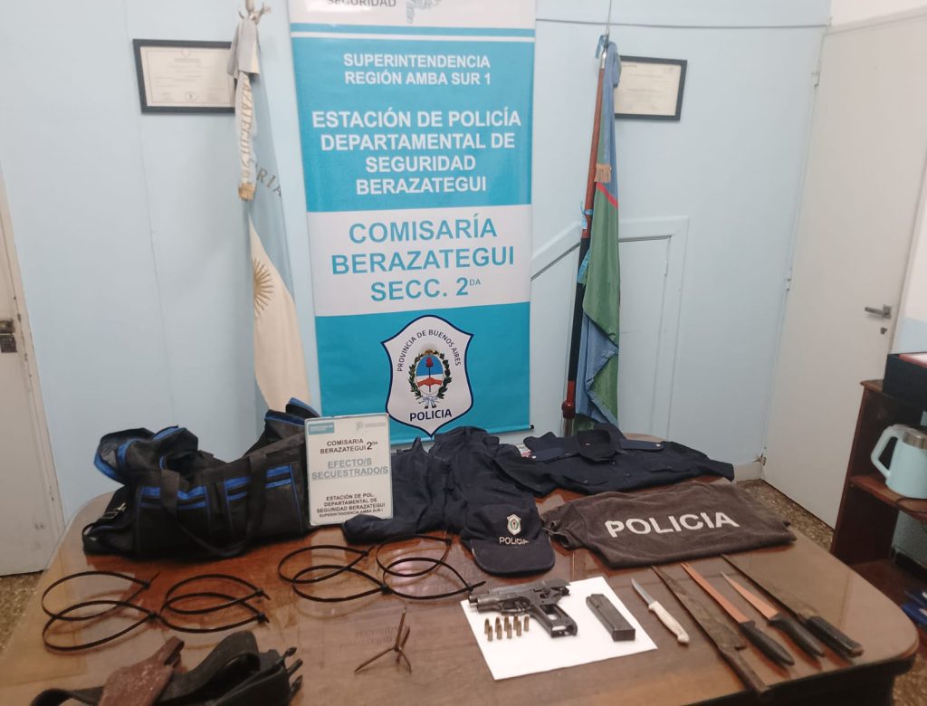 Tras la aprehensión, se secuestró la pistola junto a un bolso que contenía vestimenta policial (gorra, ropa y correaje), precintos, cuchillos y elementos caseros para pinchar neumáticos. La UFI N°03 ordenó la detención del acusado por el robo, mientras que la UFI N°01 dispuso su aprehensión adicional por Portación Ilegal de Arma de Guerra. El acompañante, identificado como Emanuel T., quedó solamente en calidad de identificado.