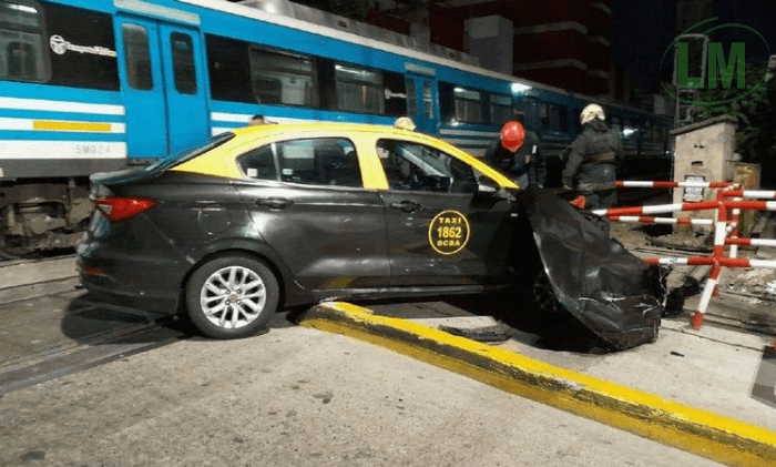 Un tren de la línea Sarmiento arrolló a un taxi en el paso a nivel de Avenida Nazca y Bacacay en el barrio de Flores, interrumpiendo el servicio de trenes durante casi una hora. El incidente ocurrió cuando el taxi intentó cruzar las vías con las barreras bajas, lo que provocó que el tren lo embistiera de lleno.