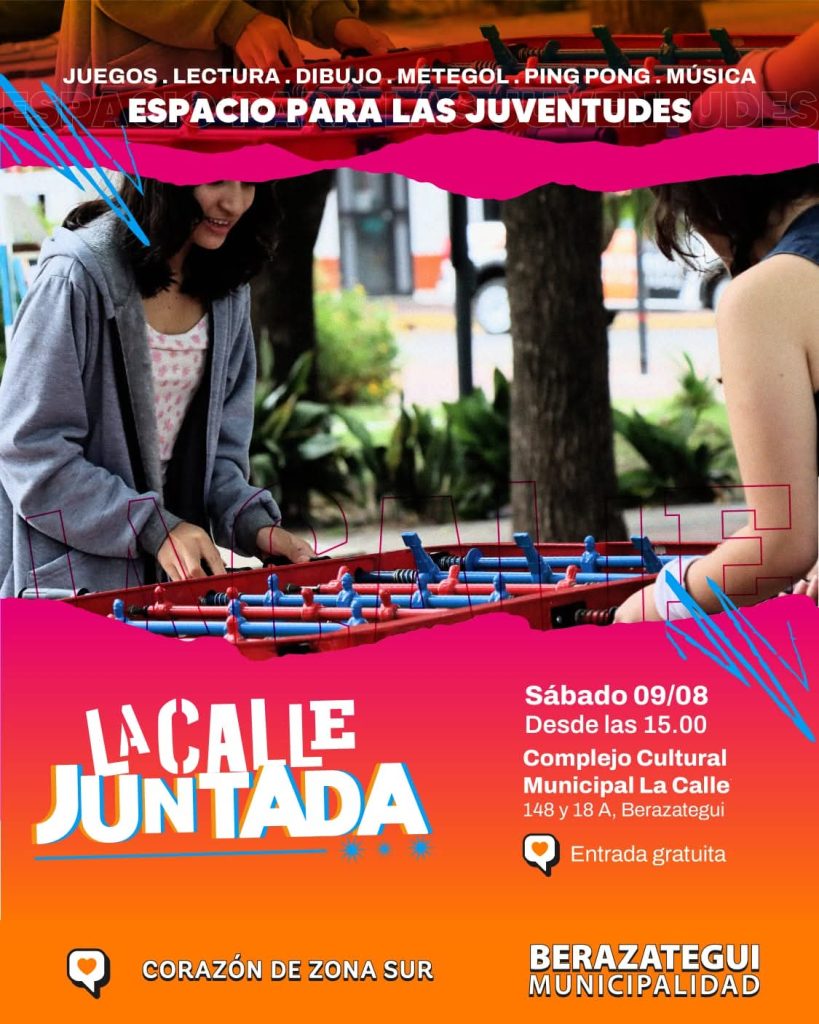 Este sábado, el Complejo Cultural Municipal La Calle en Berazategui se prepara para una tarde divertida con la “Juntada”. Desde las 15hs, los asistentes podrán disfrutar de espacios de metegol, ping pong, dibujo y lectura, acompañados de mucha música. La entrada es gratuita, lo que la convierte en una excelente opción para pasar el día con amigos y amigas.