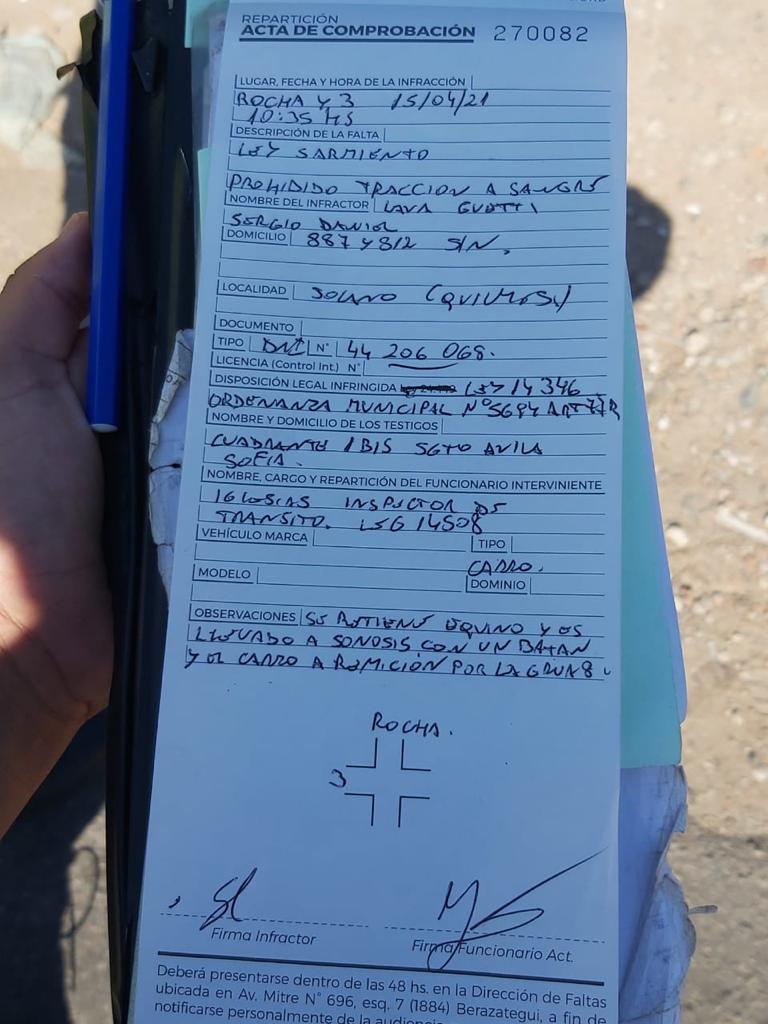 Por pedido policial se hace presente el inspector Lezcano del municipio, el cual labró un acta por infracción a la ley 14.346 por maltrato animal, procediendo al secuestro del caballo.