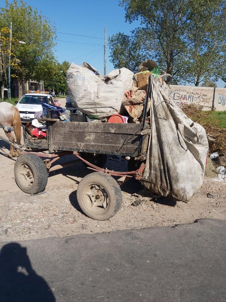 Personal del Comando de Patrullas de Berazategui, avisados por el COM, se dirigen a calle 3 y Dardo Rocha, por un caballo que era maltratado y se encontraba en mal estado cargando varias cosas.