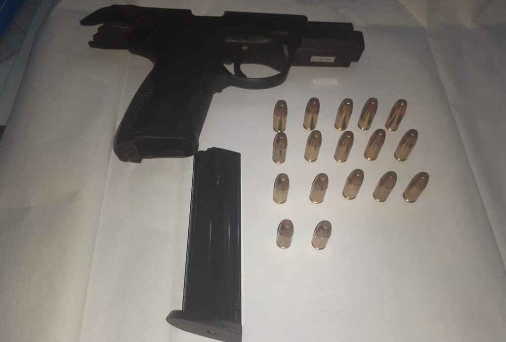 Cuando se presentó personal de prefectura en conjunto con personal policial le dan la voz de alto y le dan órdenes claras de que descienda del auto, pero este sujeto se negaba hasta que descendió y fue revisado; tenia en su poder tres bolsas de cocaína y el arma reglamentaria, todos los elementos fueron secuestrados.