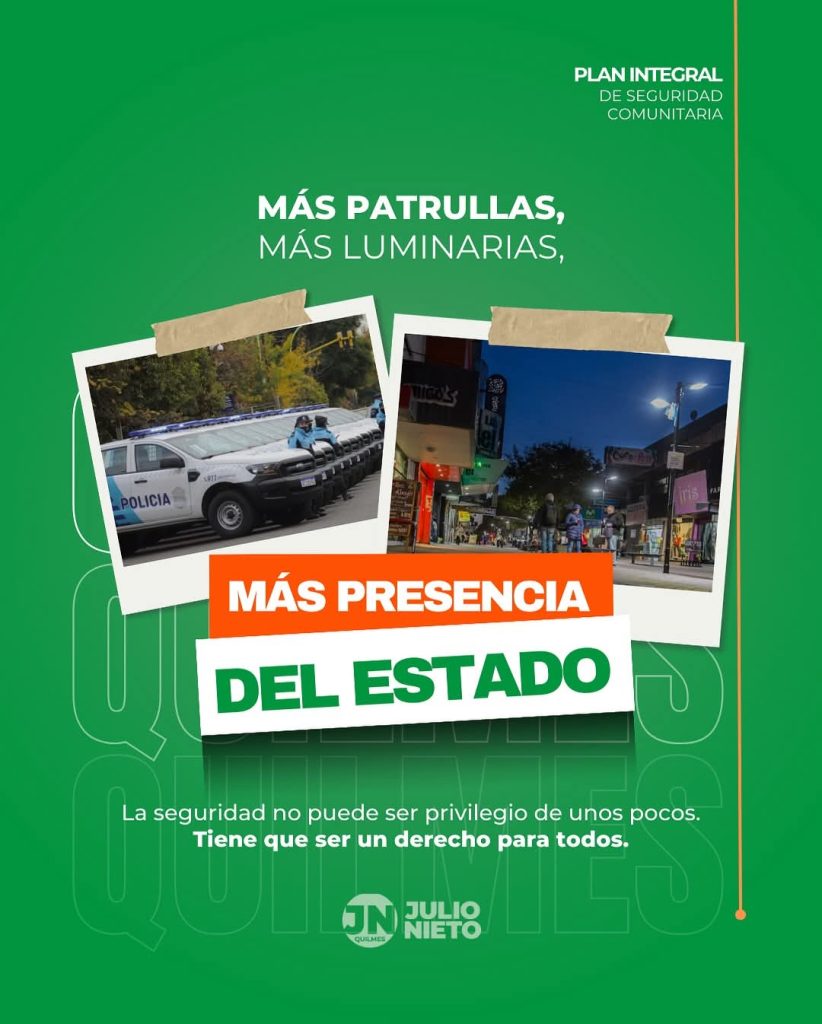 Julio Nieto expresó su preocupación por la seguridad en Quilmes, destacando la necesidad de un cambio en la realidad actual. Según Nieto, hay barrios donde los patrulleros no pasan, las luminarias no funcionan y el silencio del Estado es ensordecedor. Esto genera un clima de miedo y temor en la población.