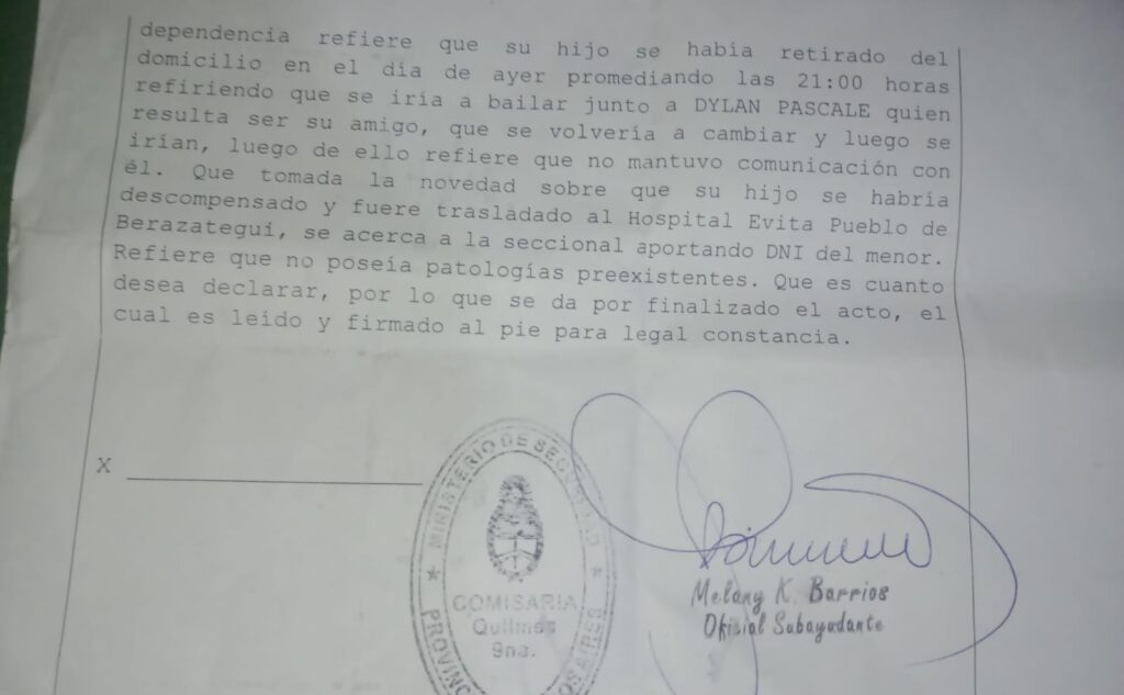 Un trágico suceso conmociona a Quilmes tras la muerte de un adolescente de 15 años, identificado como Camilo Valenzi, en las cercanías del local bailable Club XXI. La víctima habría asistido al lugar junto a su “amigo”, Dylan, alias “Panca”. Según el relato de los hechos, ambos se habrían peleado, y testigos afirman que Dylan golpeó a la víctima, causándole heridas mortales. El joven fue trasladado al hospital Evita Pueblo de Ranelagh, pero llegó sin signos vitales. La denuncia ya ha sido formalmente presentada por la madre de la víctima en la Comisaría 9na de Quilmes y el caso se encuentra en manos de la Unidad Funcional de Instrucción (UFI) N°2 de Quilmes, a cargo del fiscal Leonardo Sarra.