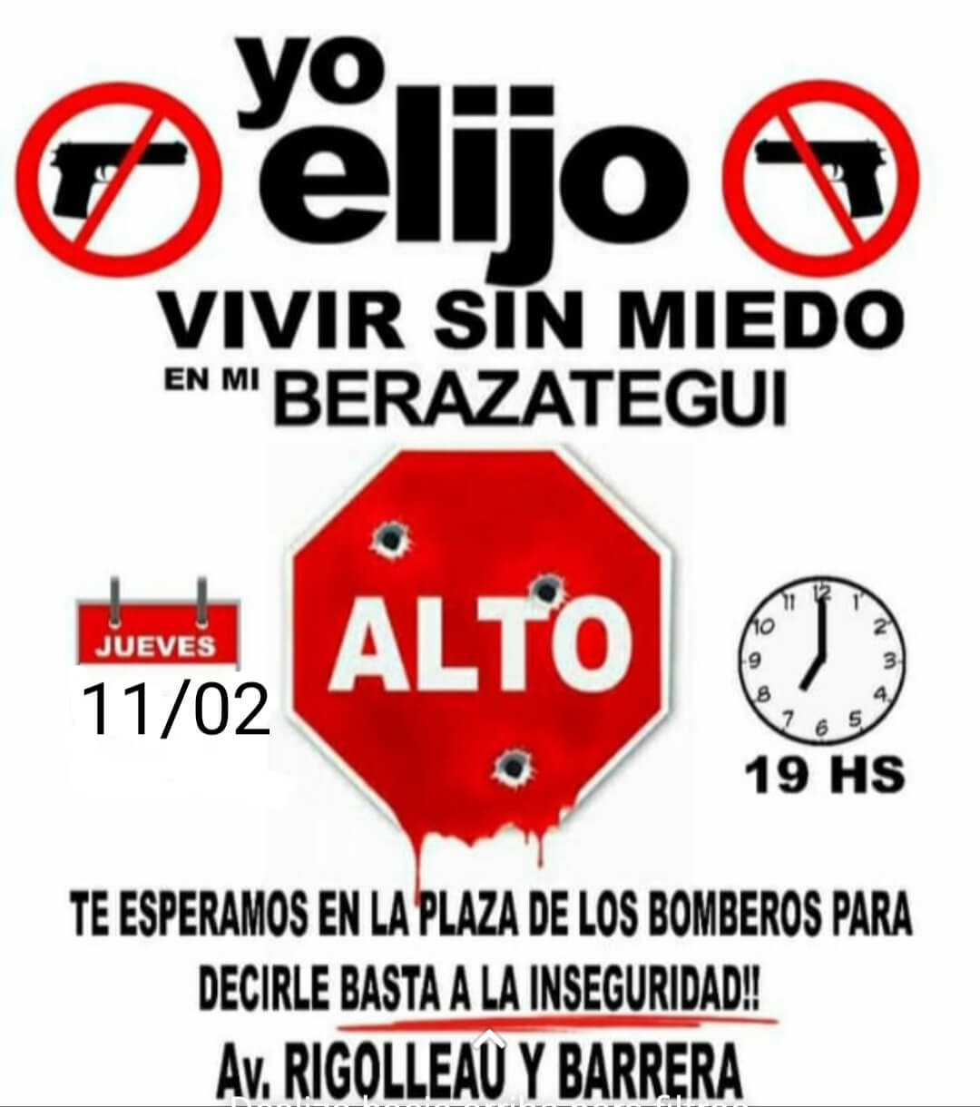 Luego de los hechos delictivos que van en aumento los vecinos de Berazategui se reunieron este jueves a las 19 horas en la plaza de los bomberos Av. Rigolleau y Diagonal Lisandro de la Torre para pedir mejores condiciones de seguridad.